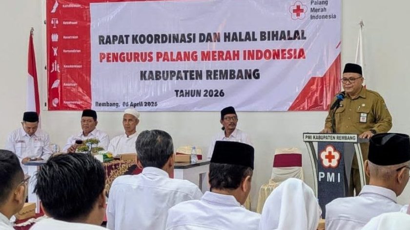 Hal tersebut disampaikan dalam acara Halalbihalal sekaligus Rapat Koordinasi yang berlangsung di Kantor PMI Kabupaten Rembang pada Senin (6/4/2026).