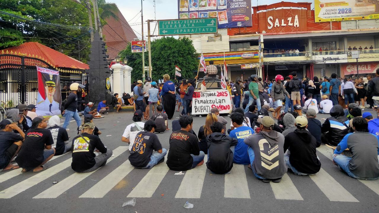 Foto: Suasana demo di Pati yang digelar oleh AMPB (Mondes/Singgih) PATI – Mondes.co.id | Aliansi Masyarakat Pati Bersatu (AMPB) merespons santai dan positif atas upaya sejumlah aktivis luar aliansi tersebut yang berdialog dengan Bupati Pati, Sudewo.