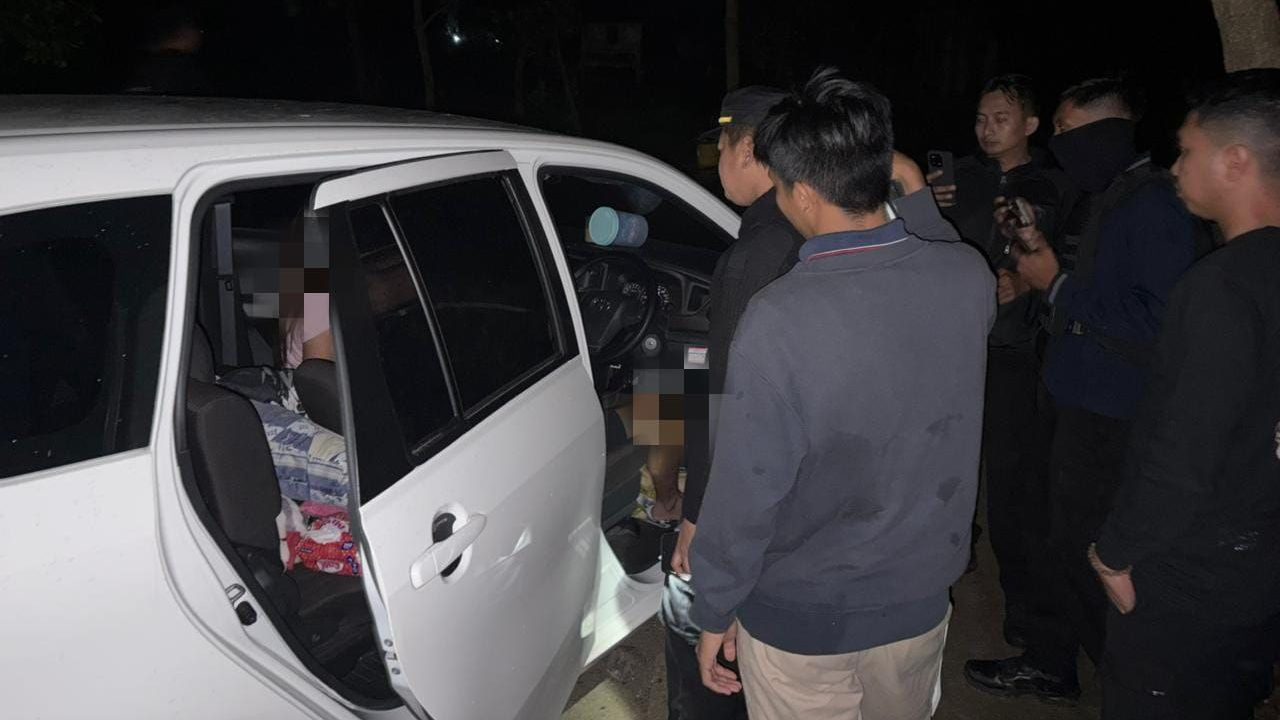 Hasilnya, petugas pun menemukan sepasang muda-mudi yang tengah asyik bermesraan di dalam mobil.