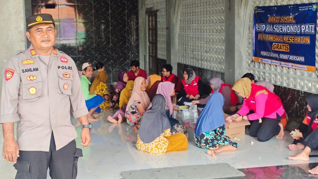 Dalam kegiatan tersebut, Polsek Sukolilo menggandeng RSUD Soewondo Pati yang menerjunkan tenaga medis untuk memberikan pemeriksaan kesehatan gratis kepada warga.