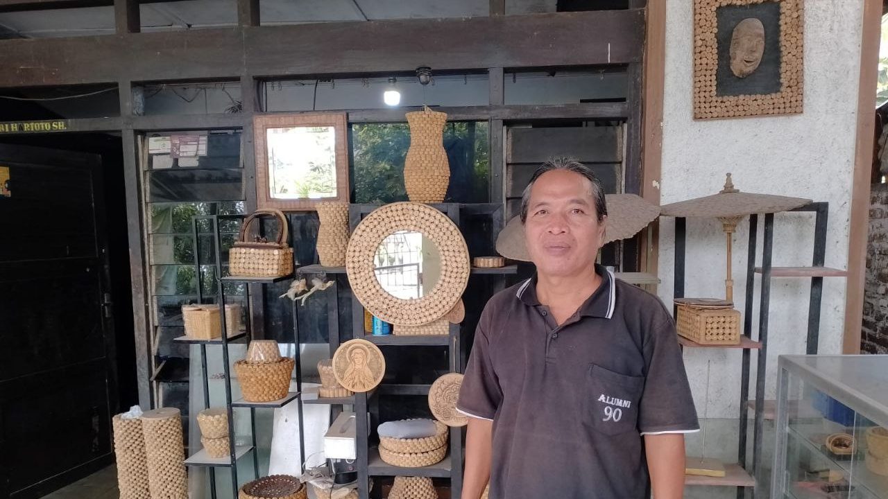 Foto: Adi menunjukkan hasil karya kerajinan dari bonggol jagung (Mondes/Istimewa) PATI – Mondes.co.id | Dengan memanfaatkan limbah dari bonggol jagung yang sudah tidak terpakai, Industri Kecil Menengah (IKM) Tyara Craft berhasil meraup jutaan rupiah.