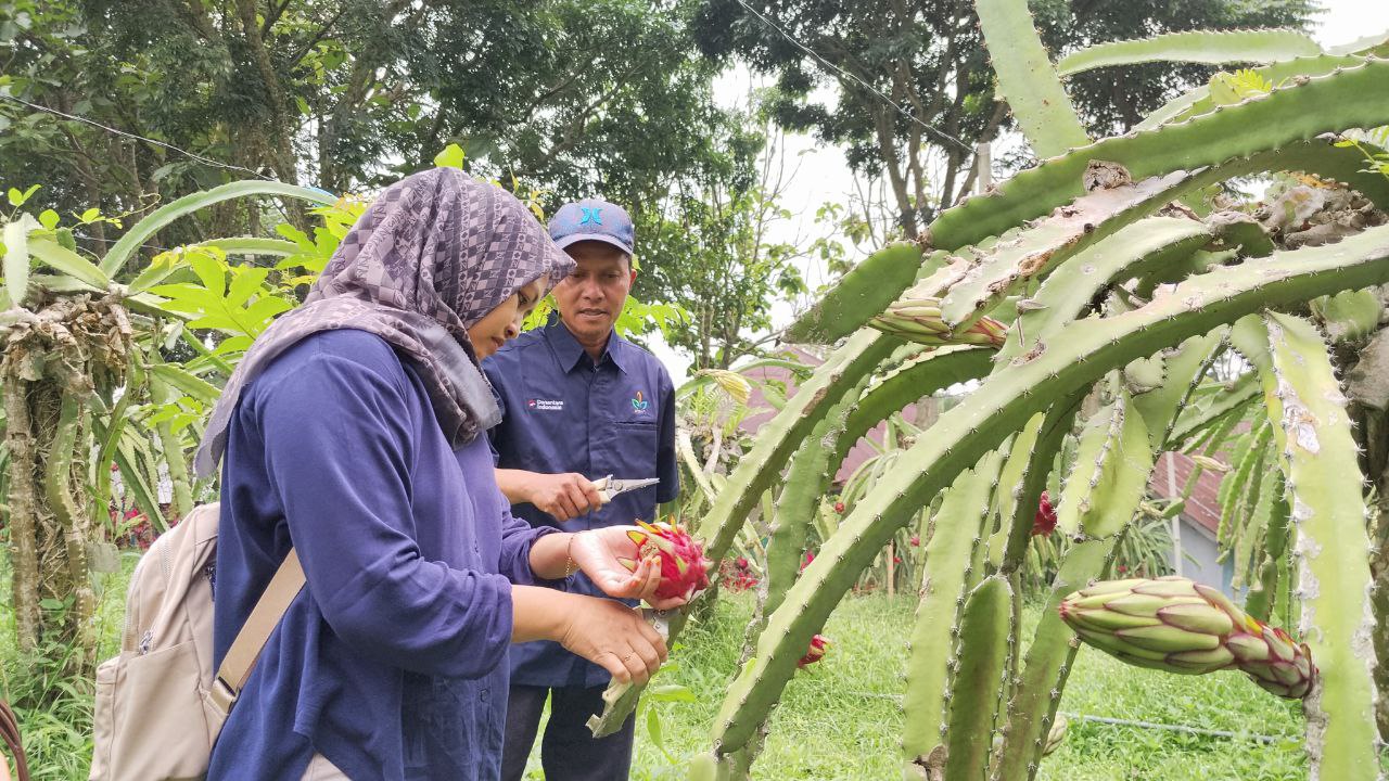 “Lagi petik buah naga yang saat ini sedang musim, seru bisa metik sendiri, bisa pilih besar kecilnya. Harganya terjangkau, Rp15 ribu per kilogram,” ungkapnya saat diwawancarai awak media, Rabu, 31 Desember 2025.