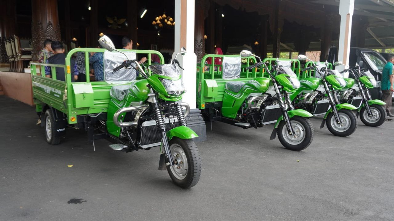 Kendaraan sampah yang terdiri dari roda empat dan roda tiga ini merupakan hibah daerah sebagai upaya memperkuat sistem pengelolaan sampah berbasis desa.