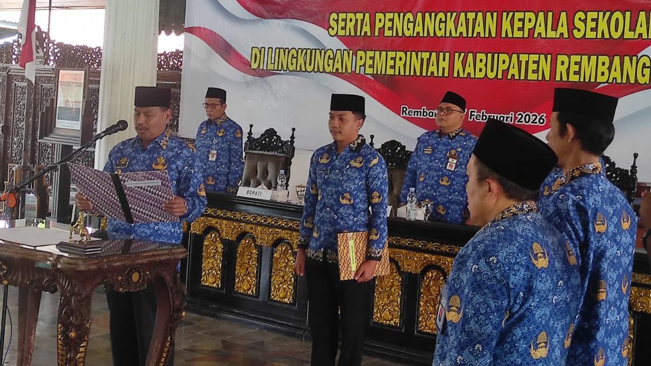 Di mana, sebanyak 93 Kepala Sekolah dari jenjang Taman Kanak-kanak (TK), Sekolah Dasar (SD), dan Sekolah Menengah Pertama (SMP) di bawah naungan Dinas Pendidikan Kabupaten Rembang, resmi menempati posisi baru.