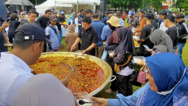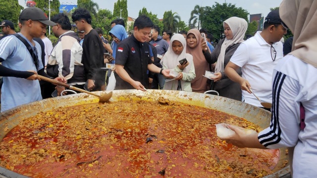 “Terima kasih untuk kehadiran Mas Bobon Santoso yang memasak untuk 3.500 porsi. Saya minta nanti setelah mendapatkan menu masakan dari mas Bobon, agar segera dimakan,” kata Samani dalam sambutannya.