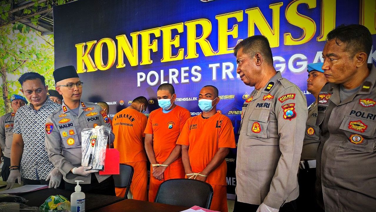 Kepada awak media, Kapolres Trenggalek, AKBP Ridwan Maliki dalam keterangan persnya menyampaikan proses pengungkapan kasus termasuk kronologisnya.