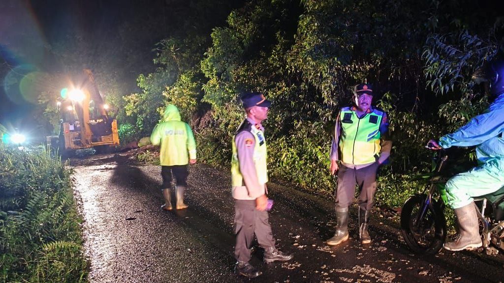 Pohon tumbang telah dibersihkan secara gotong royong, sementara rumah terdampak longsor dipastikan aman dari korban jiwa.