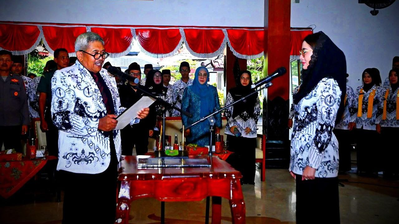 Foto: Novita Hardini saat dikukuhkan menjadi Bunda Guru PGRI Trenggalek (Mondes/Her) TRENGGALEK – Mondes.co.id | Dinilai berdedikasi tinggi dalam dunia pendidikan, Novita Hardini dikukuhkan menjadi Bunda Guru Persatuan Guru Republik Indonesia (PGRI) Kabupaten Trenggalek masa bhakti 2025-2030.