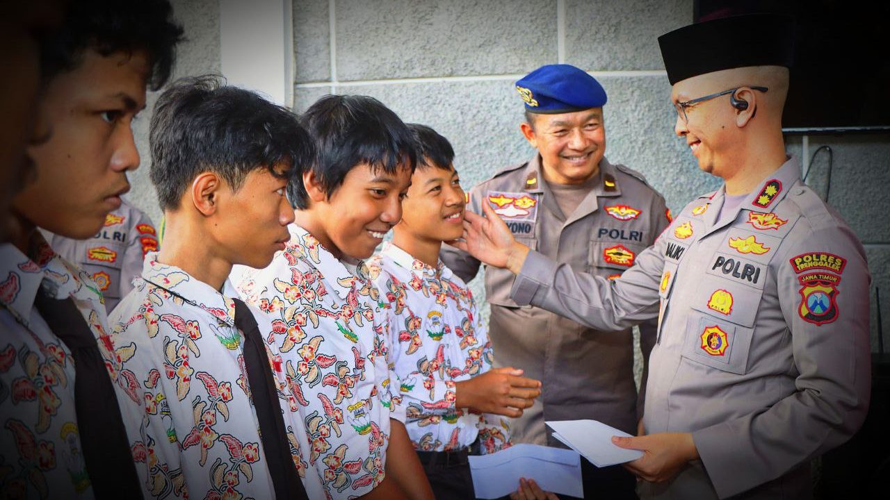 Sebagai wujud kepedulian sosial, Kapolres Trenggalek membersamai anggota Polairud menyalurkan bantuan sosial dan santunan kepada puluhan pelajar SLB Kemala Bhayangkari Trenggalek.