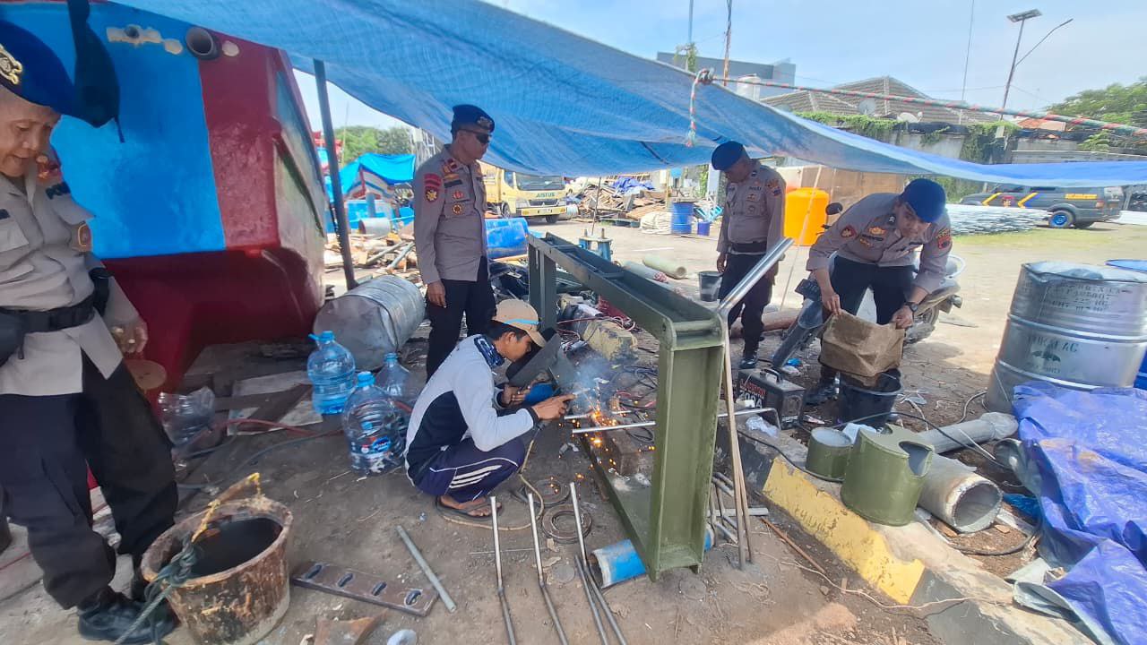Foto; Satpolairud Polresta Pati saat melakukan pengecekan pembuatan kapal, Selasa (2/12/2025). (Mondes/Istimewa)