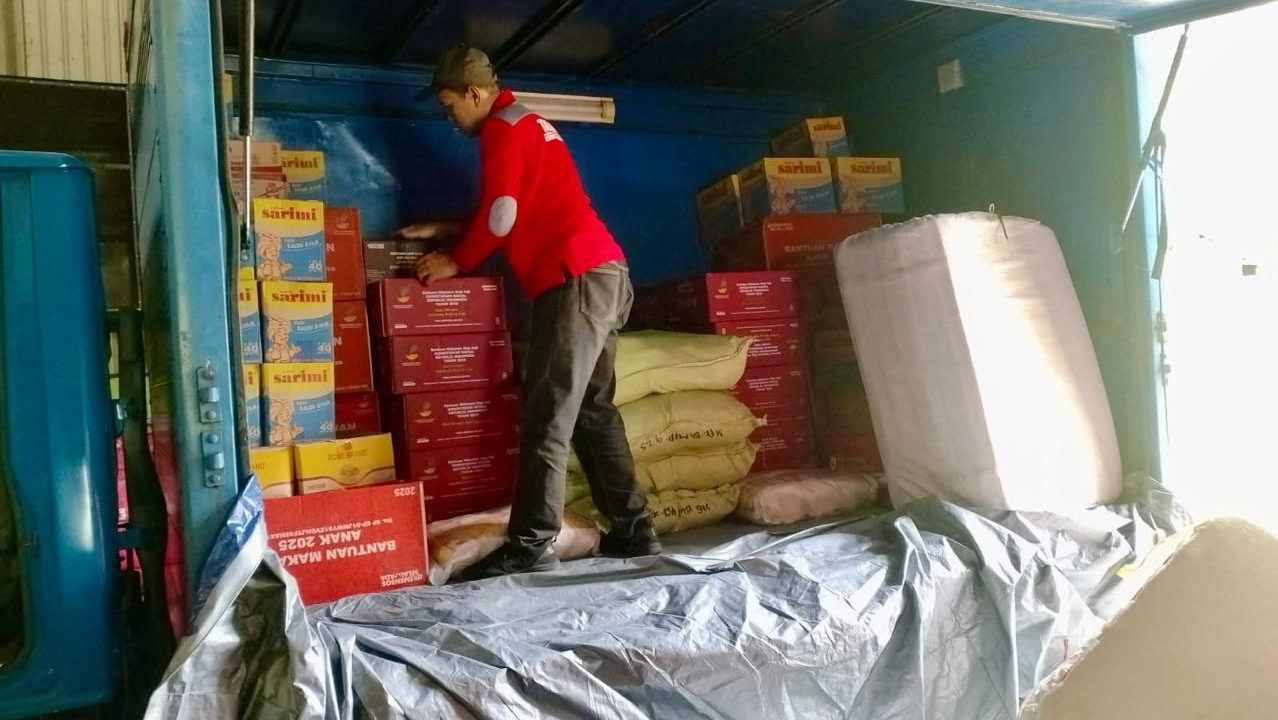 Selain itu, disalurkan pula bantuan logistik berupa gula pasir, minyak goreng, mi instan, dan sarden kaleng.