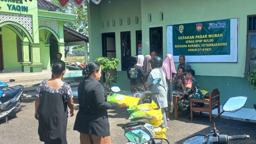 PATI – Mondes.co.id | Badan Urusan Logistik (Bulog) mengedarkan beras Stabilisasi Pasokan Harga Pangan (SPHP) melalui Komando Rayon Militer (Koramil) 20/Tambakromo pada hari ini, Rabu (27/8/2025) di Markas Koramil 20/Tambakromo.
