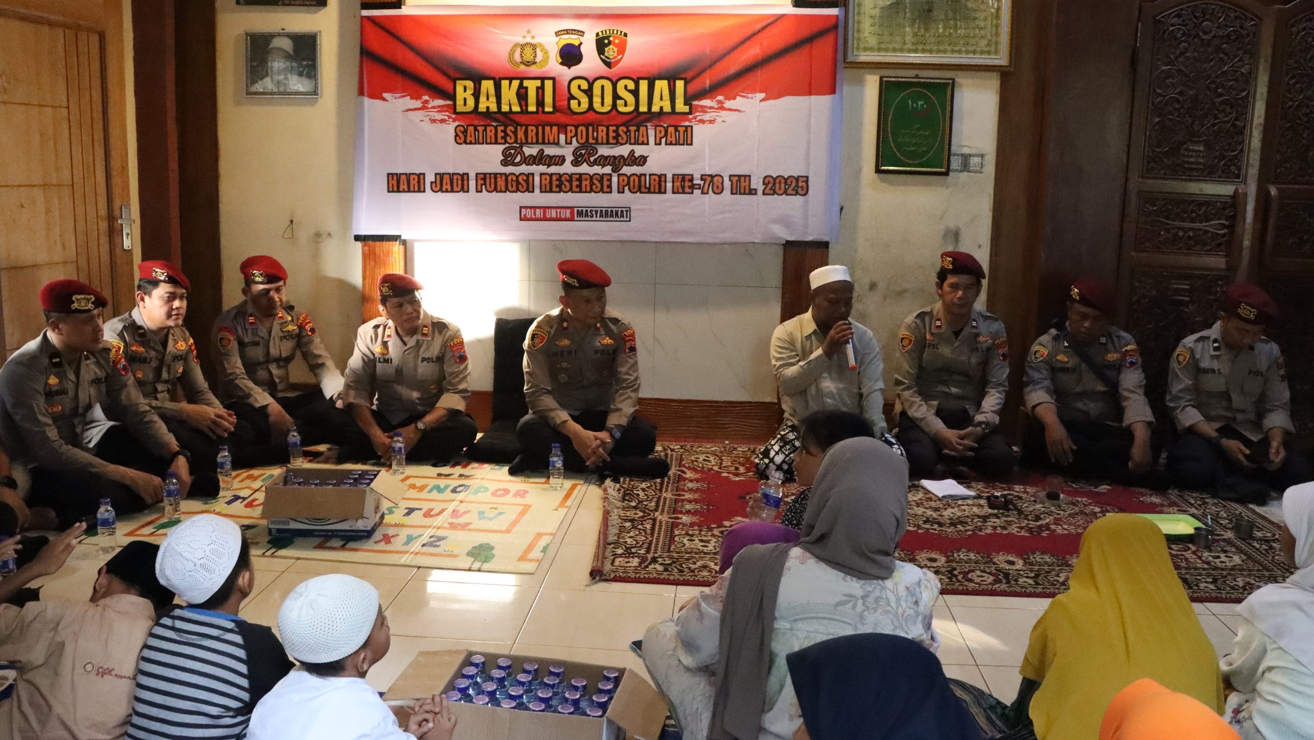 Foto: Sat Reskrim Polresta Pati menggelar kegiatan Bhakti sosial bertajuk “Reserse Presisi” (Mondes/Istimewa) PATI – Mondes.co.id | Dalam rangka memperingati Hari Ulang Tahun (HUT) ke-78 Korps Reserse, Sat Reskrim Polresta Pati menggelar kegiatan Bhakti sosial bertajuk “Reserse Presisi”.