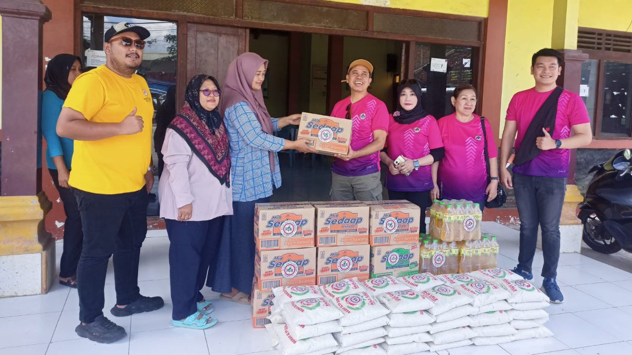 Ada pun bantuan meliputi beras, mie instan, air mineral, minyak goreng, telur, biskuit, dan snack.