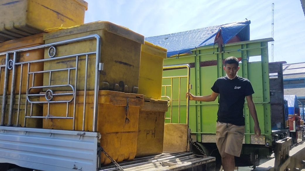 Foto: Ikan-ikan sedang diangkut di pelelangan (Mondes/Singgih) PATI – Mondes.co.id | Jenis ikan layang menempati urutan pertama yang terbanyak dari hasil tangkapan laut nelayan Kabupaten Pati.