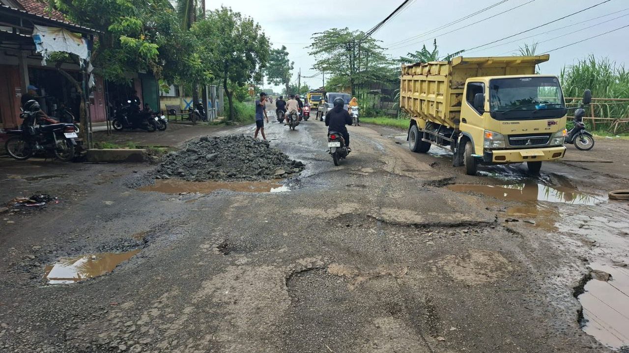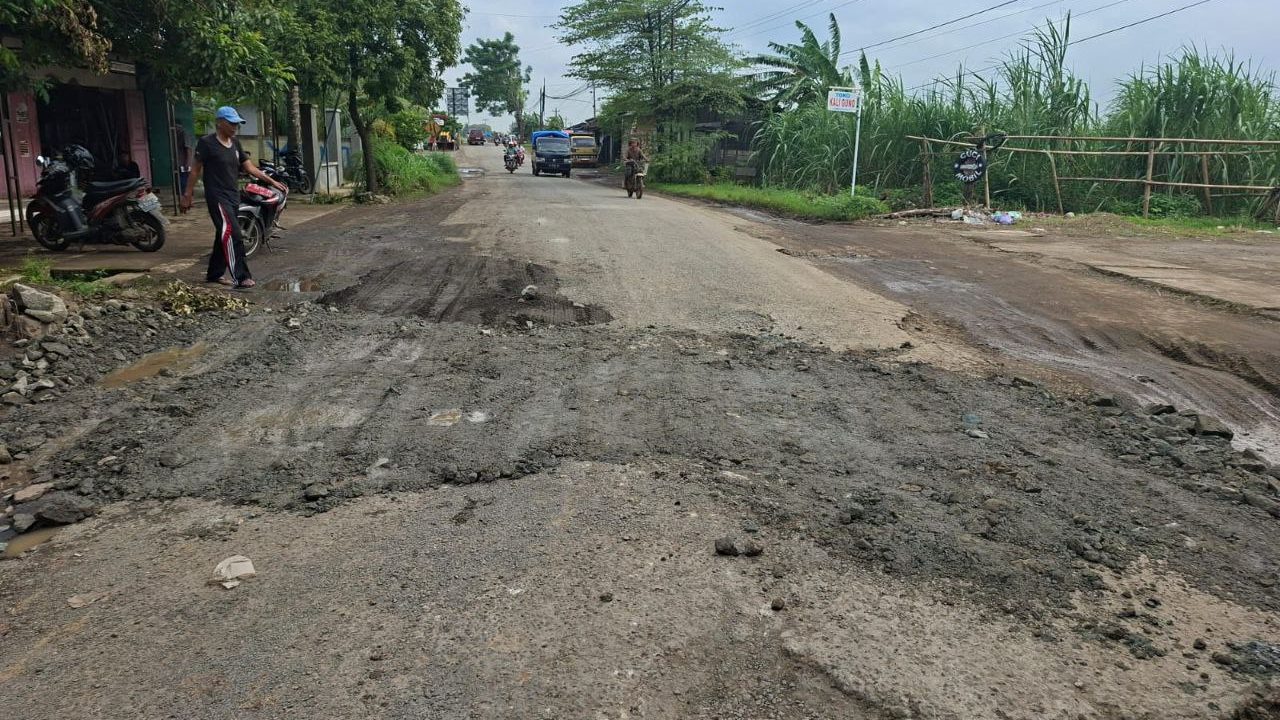 Banyak lubang menganga di jalur tersebut, hingga menyebabkan aktivitas pengguna jalan terhambat.
