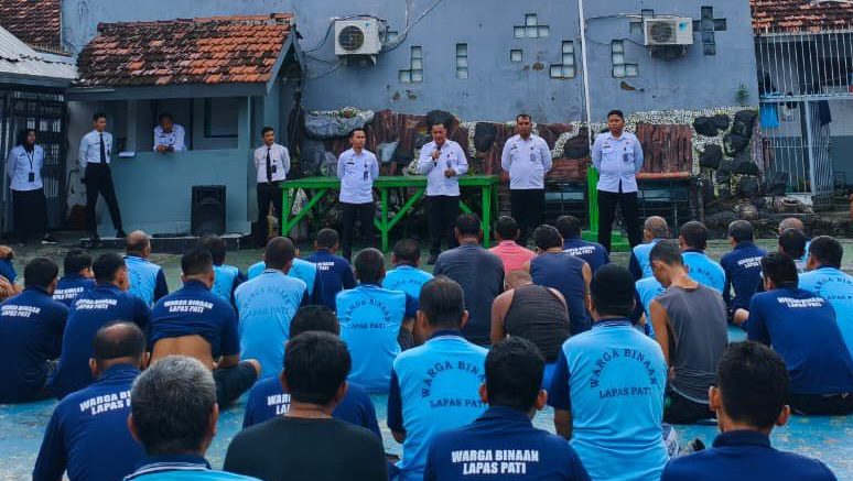 Foto: Para WBP di Lapas Pati saat menerima arahan dari Kalapas jelang Nataru (Mondes/Vind) PATI – Mondes.co.id | Menjelang Natal dan Tahun Baru (Nataru), Kepala Lembaga Pemasyarakatan (Kalapas) Kelas IIB Pati, Suprihadi, memberikan pengarahan kepada Warga Binaan Pemasyarakatan (WBP).