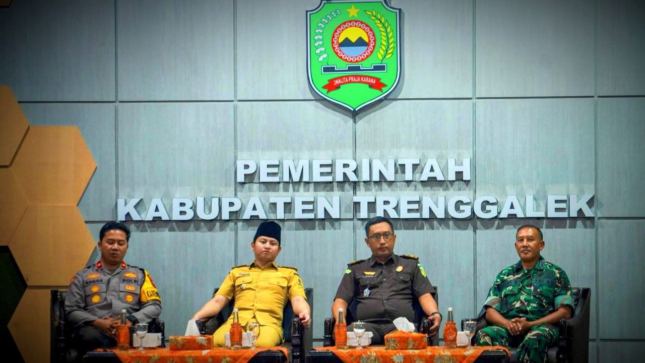 Foto: Forkopimda Trenggalek gelar rakor sinergitas di Gedung Bhawarasa (Mondes/Her) TRENGGALEK – Mondes.co.id | Mendekati datangnya Bulan Ramadan 1447 H, Forum Komunikasi Pimpinan Daerah (Forkopimda) Trenggalek gelar rakor sinergitas.
