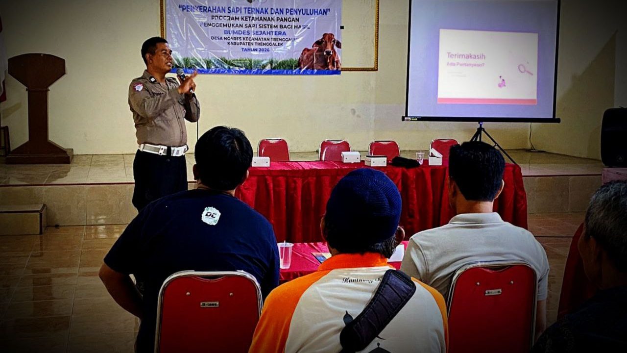 Foto: Anggota Unit Kamsel Satlantas Polres Trenggalek gelar Polbindes di Desa Ngares, Trenggalek (Mondes/Her) TRENGGALEK – Mondes.co.id | Menjelang datangnya bulan Ramadan 1447 H, Satlantas Polres Trenggalek terus gencarkan edukasi tentang kamseltibcarlantas.