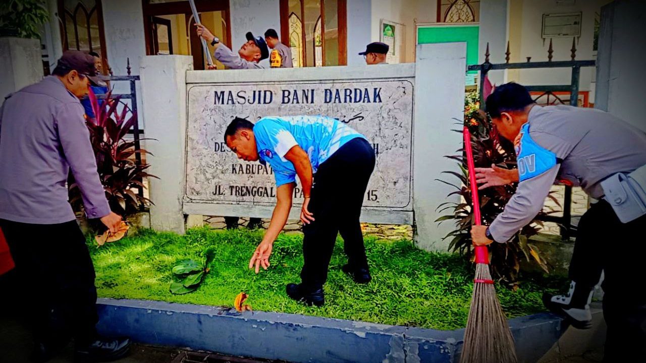 Foto; Masjid Bani Dardak di Desa Suruh, jadi sasaran program Jum’at ASRI personel Polsek Suruh (Mondes/Her) TRENGGALEK – Mondes.co.id | Mewujudkan Jumat ASRI (Aman, Sehat, Resik, dan Indah) sejumlah anggota kepolisian memenuhi halaman masjid Bani Dardak di Desa Suruh, Kecamatan Suruh, Trenggalek.