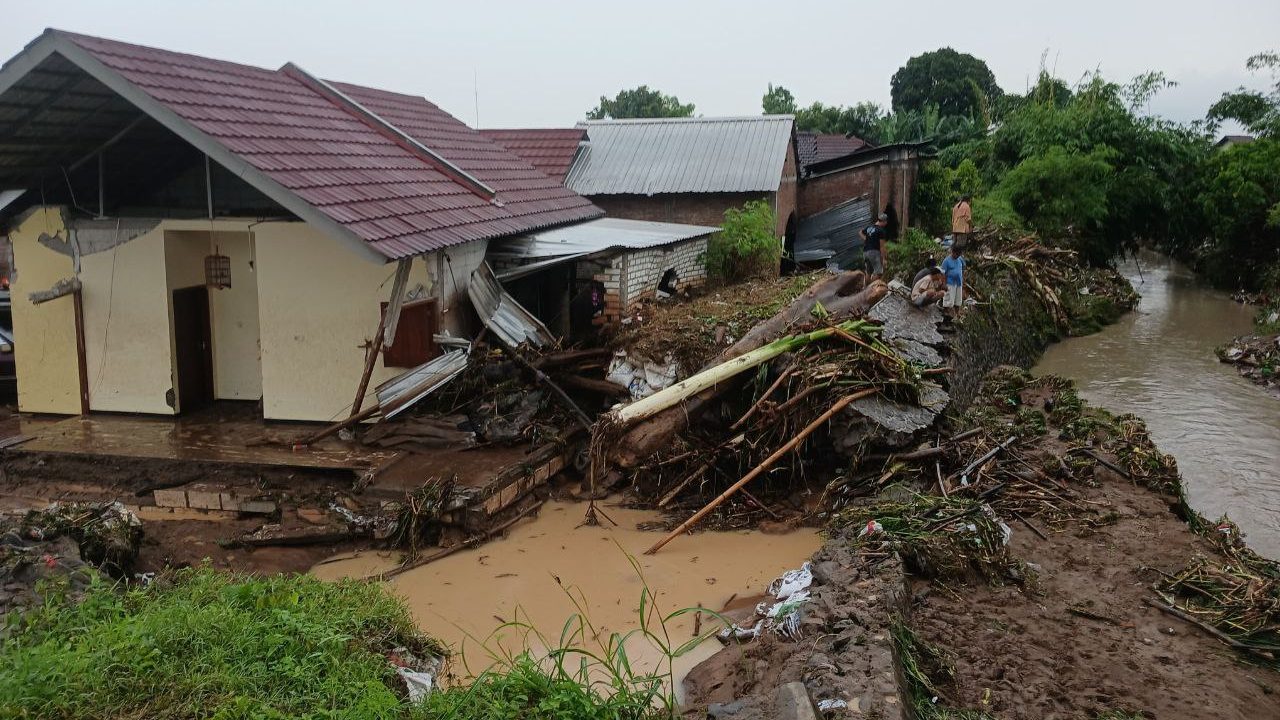 Kejadian itu begitu dahsyat hingga sejumlah rumah hanyut terbawa derasnya arus yang melintas di Sungai Silugonggo.