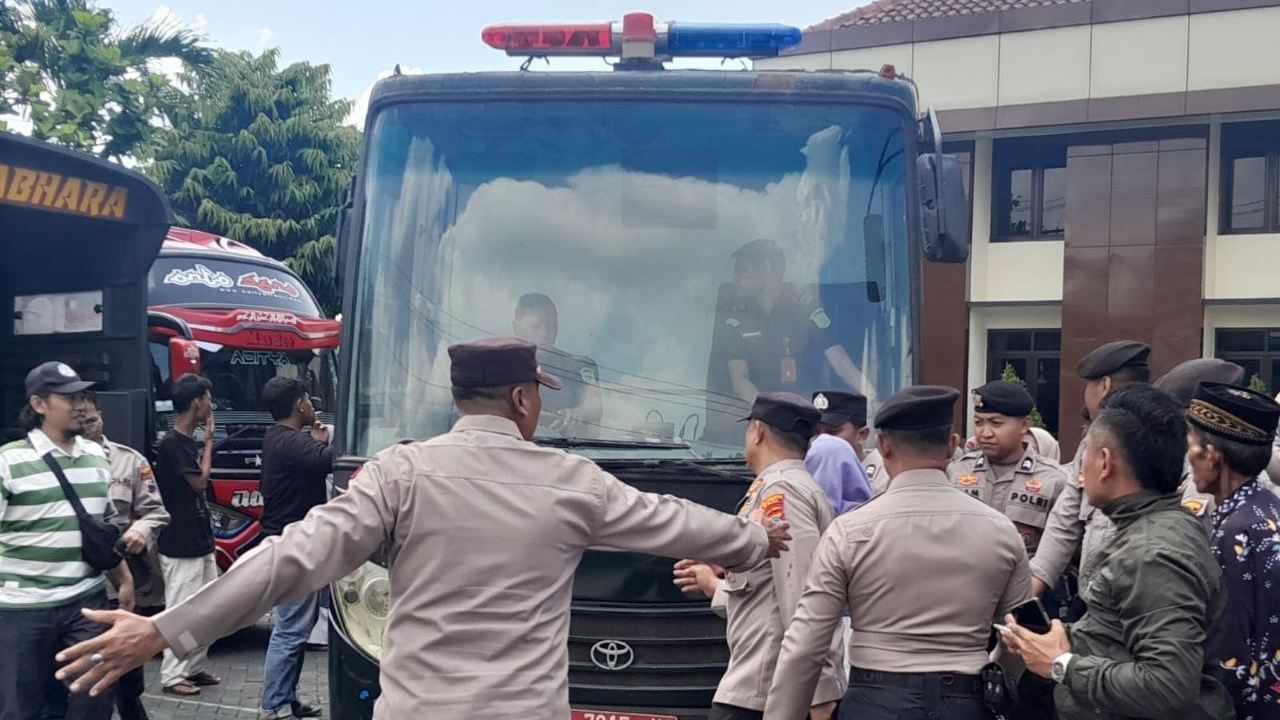 Petugas kepolisian yang berjaga pun langsung merespons dan mengimbau agar warga menyingkir dan tidak menghalangi kendaraan tahanan tersebut.