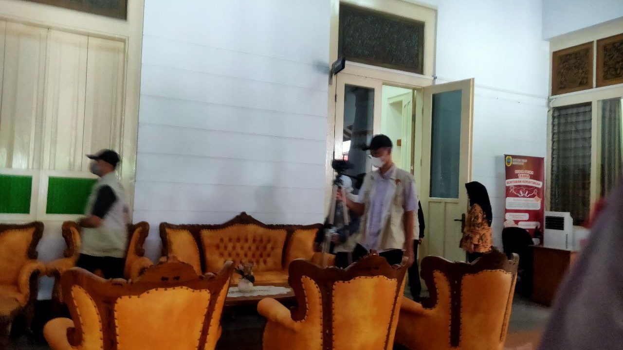 Terlihat puluhan petugas memasuki ruangan dan menggeledah ruangan kerja Sudewo, Bupati Pati nonaktif.