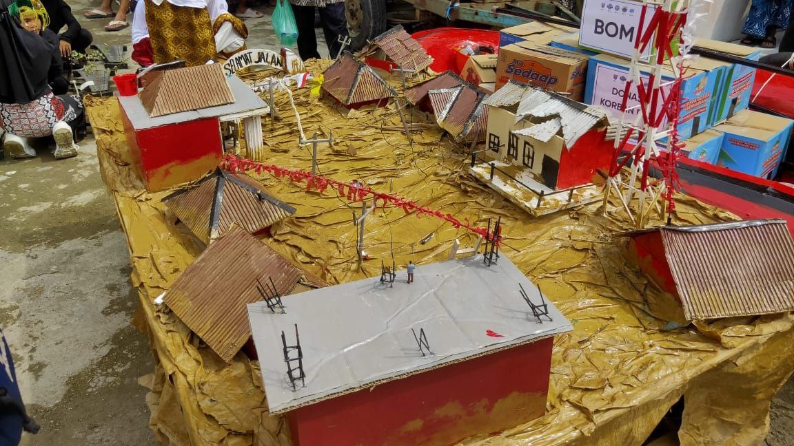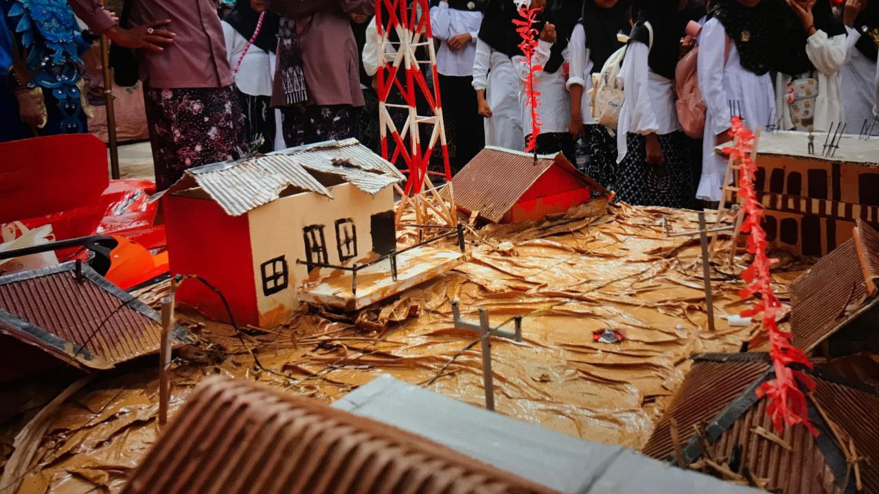 Adapun properti yang dipamerkan meliputi miniatur ilustrasi banjir bandang yang dibuat secara detail.