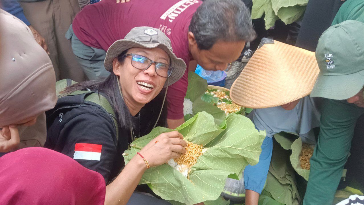 Terlihat ratusan masyarakat turut larut dalam acara tersebut, mulai dari anak-anak hingga kakek nenek begitu antusias ikut menyantap makanan yang telah disajikan.
