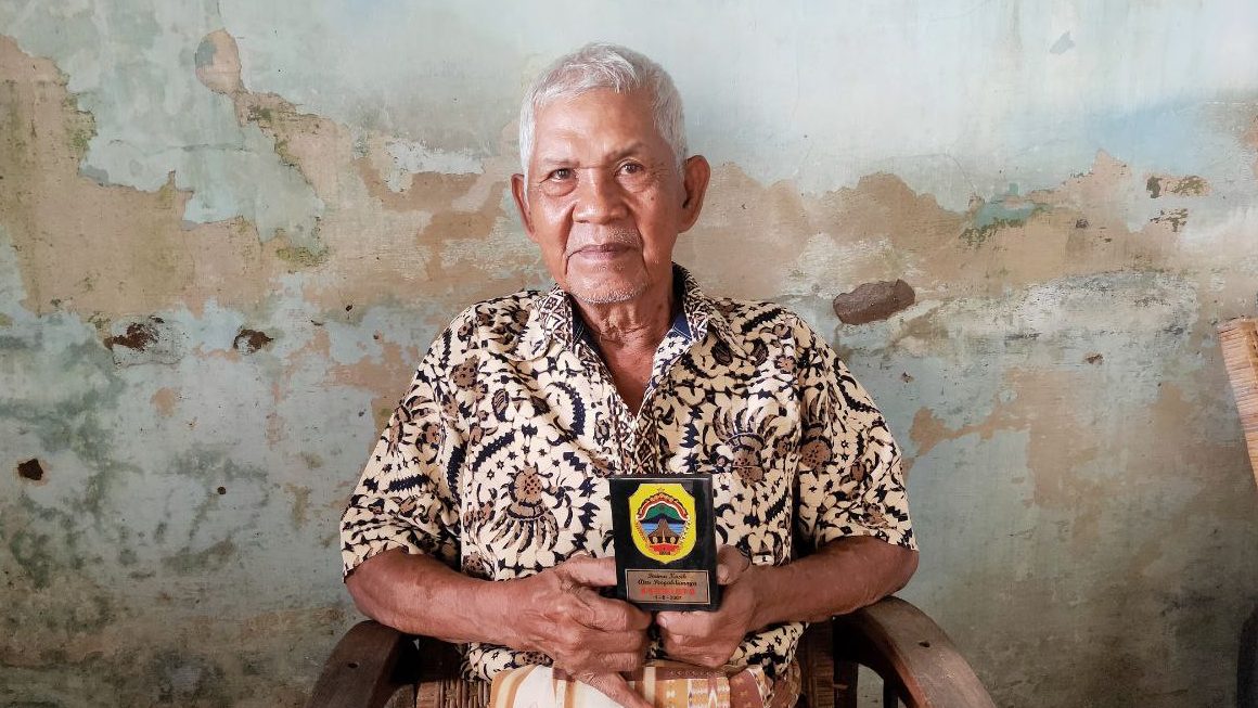 Foto: Kasminto, seorang juru kunci Taman Makam Pahlawan Giri Dharma Pati (Mondes/Singgih)