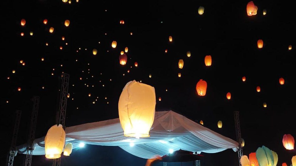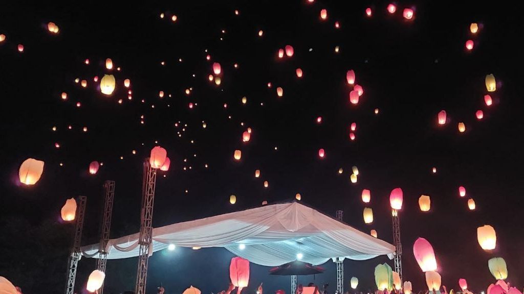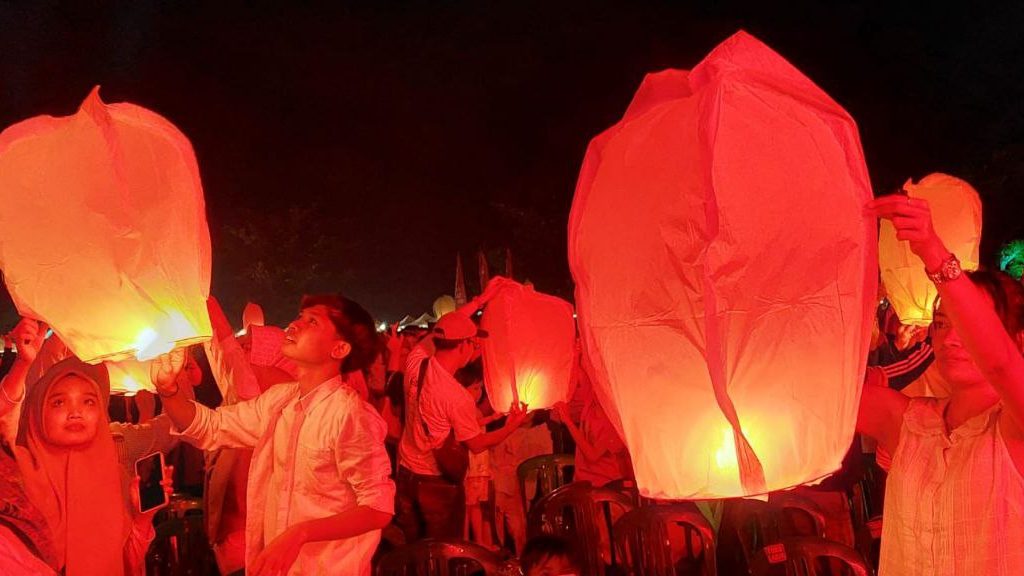 Sebanyak 1001 lampion dilepas oleh ribuan warga dengan penuh kegembiraan.
