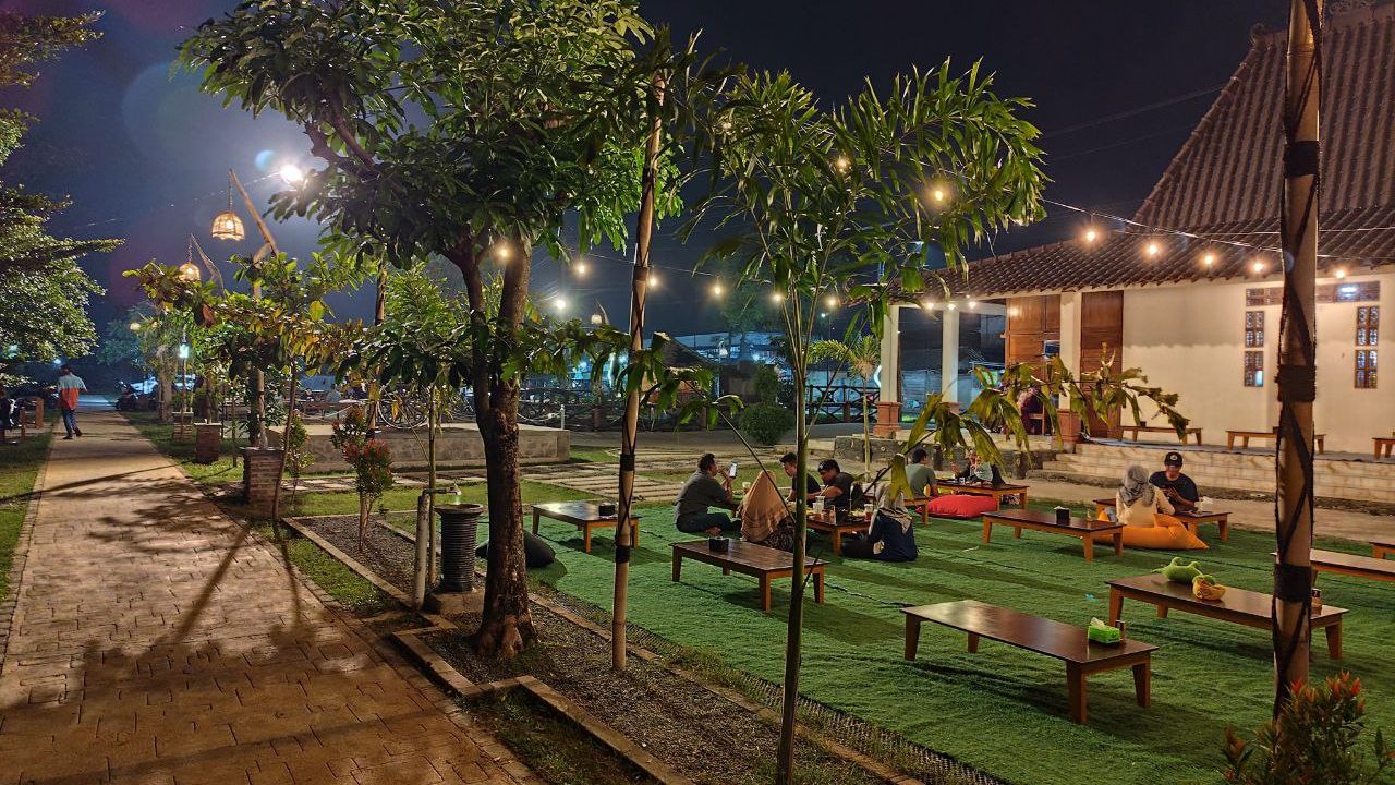 Begitu masuk, pengunjung langsung disambut pepohonan hijau dan tempat nongkrong yang membuat betah berlama-lama.