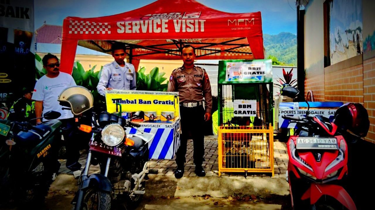 Sebab, Polres Trenggalek juga menyediakan bengkel gratis yang ditempatkan di Pos pelayanan Nataru Agropark.