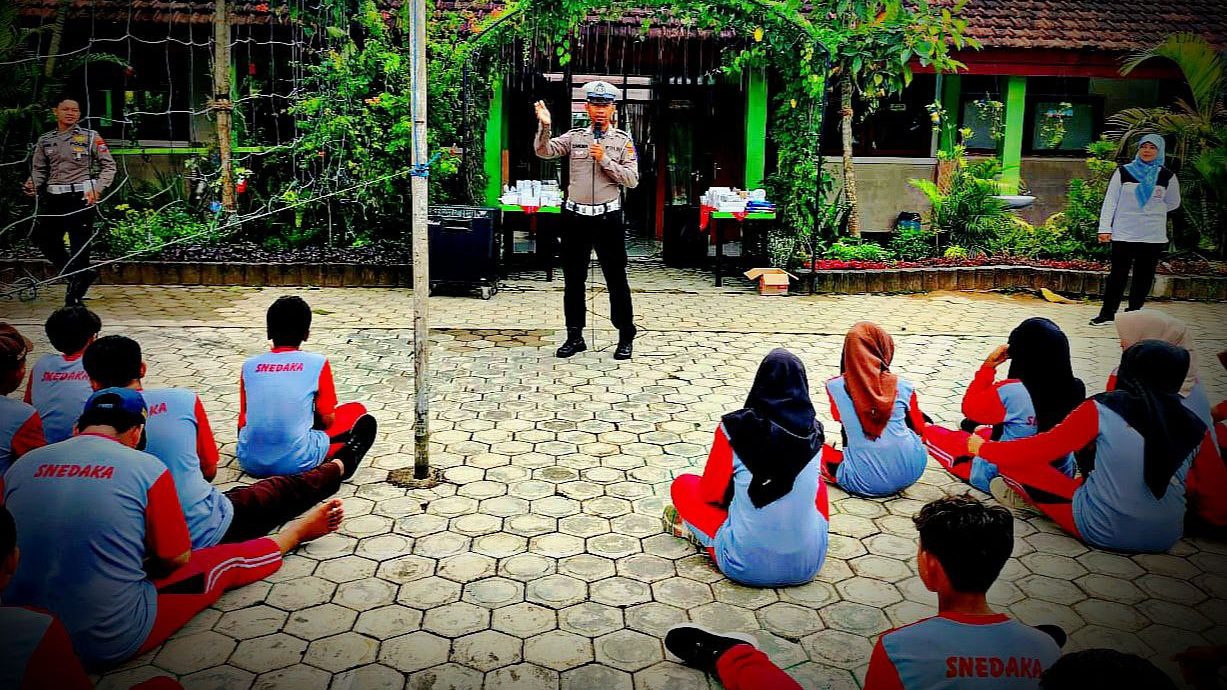 Di sela-sela waktu istirahat, Satgas Preemtif Operasi Zebra Semeru 2025, menyampaikan pembinaan dan penyuluhan kepada para siswa soal tertib berlalu lintas.