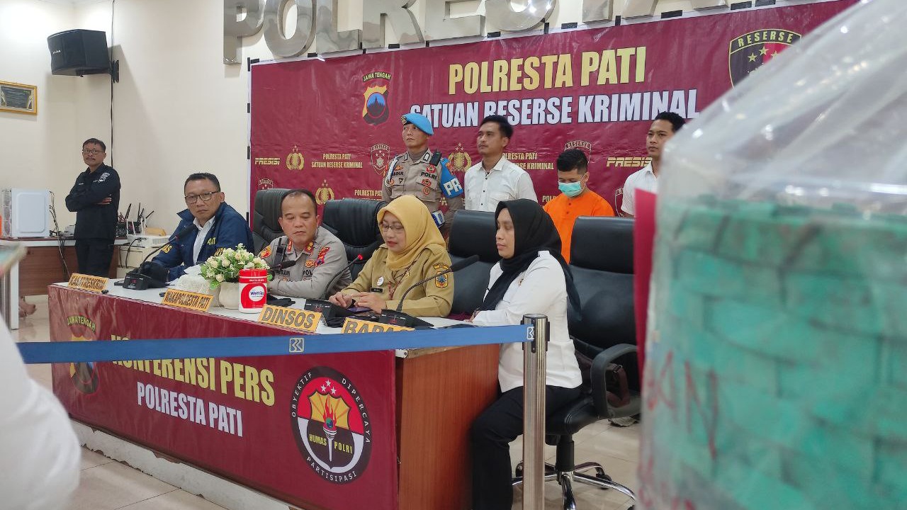 Foto: Konferensi pers kasus pembuangan bayi di Pati (Mondes/Singgih) PATI – Mondes.co.id | Pelaku keji pembuangan bayi di Perumahan Puri Baru, Desa Puri, Kecamatan Pati, Kabupaten Pati telah diringkus Kepolisian Resor Kota (Polresta) Pati.