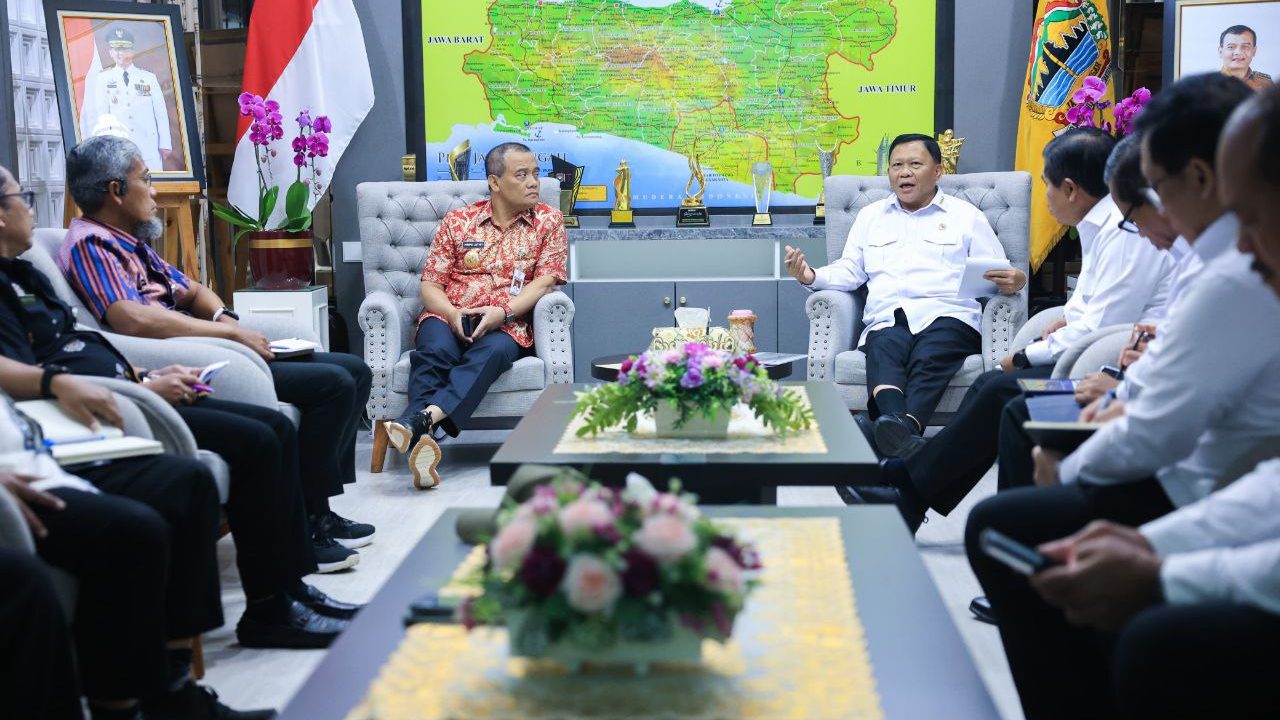 Foto: Kepala Badan Otorita Pengelola Pantura Jawa (BOPPJ) Didit Herdiawan Asha saat melakukan audiensi dengan Gubernur Jawa Tengah, Ahmad Luthfi (Mondes/Istimewa) SEMARANG – Mondes.co.id | Pembangunan Giant Sea Wall (tanggul laut) di wilayah Pantura Jawa Tengah direncanakan mencapai 274,7 kilometer.