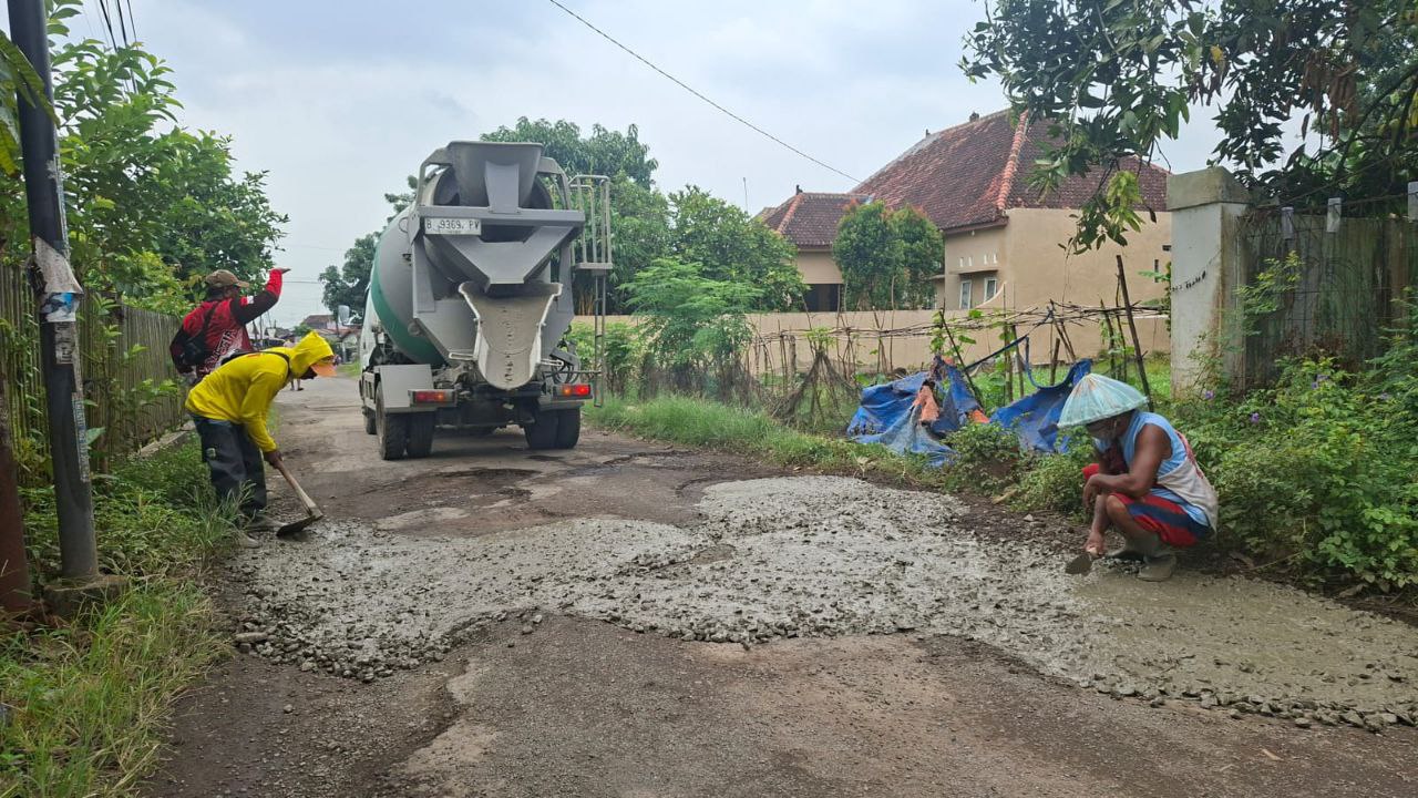 PATI – Mondes.co.id | Pengusaha muda bersama Pemerintah Desa Ngawen, Kecamatan Margorejo, Kabupaten Pati, bergotong royong memperbaiki jalan poros desa yang mengalami kerusakan cukup parah dengan cor beton, Selasa (24/2/2026).