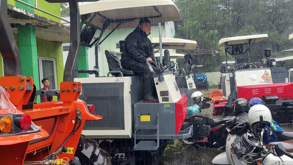 Alsintan yang diserahkan meliputi 5 unit traktor roda dua, 5 unit pompa air, 14 unit traktor roda empat, 7 unit traktor crawler, serta 3 unit combine harvester dengan total nilai mencapai Rp7,7 miliar.