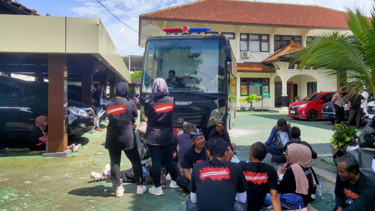 Puluhan warga bersama keluarga terdakwa duduk di depan mobil tahanan, sehingga kendaraan tersebut tidak dapat meninggalkan area pengadilan selama kurang lebih tiga jam.