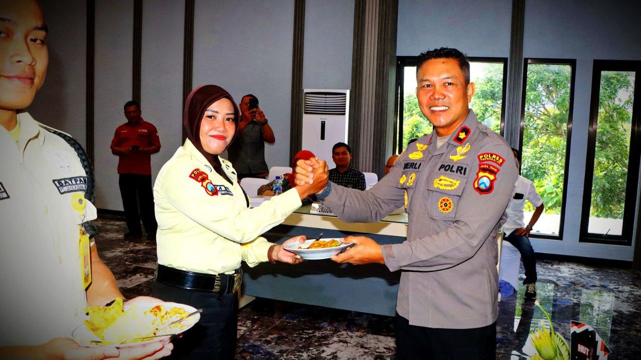 Bahkan, dirinya juga memotong tumpeng untuk diserahkan kepada sejumlah perwakilan Satpam.