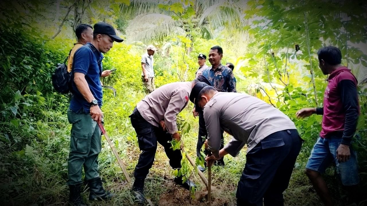 Foto: Anggota Polres Trenggalek bersama stakeholder terkait dan warga melakukan penanaman pohon di kawasan hutan (Mondes/Her) TRENGGALEK – Mondes.co.id | Menyambut Hari Bhayangkara ke-80 tahun 2025, Polres Trenggalek gelar gerakan tanam pohon serentak.