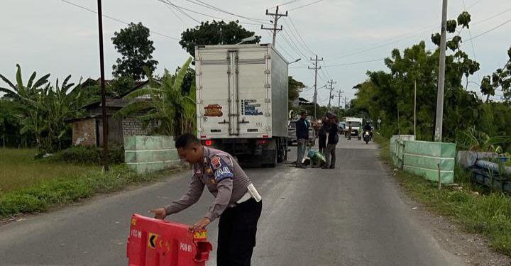 Satlantas Polres Rembang Amankan Lokasi Jembatan Berlubang di Japerejo