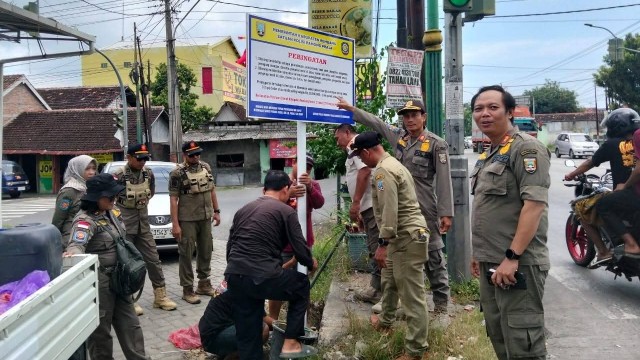 Tak hanya soal toko modern, personel Satpol PP juga bergerak memasang papan peringatan larangan aktivitas PGOT di 10 titik strategis, mulai dari Perempatan Pasar Pentungan, Galonan, hingga area Alun-alun Lasem dan Pamotan.