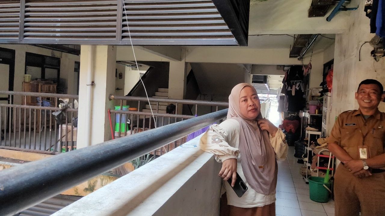 Foto: Kepala UPTD Rusunawa Bumirejo, Mutadi ketika meninjau kamar di lantai 2 (Mondes/Singgih) PATI – Mondes.co.id | Kepala Unit Pelaksana Teknis Daerah (UPTD) Rumah Susun Sederhana Sewa (Rusunawa) Bumirejo, Kecamatan Juwana, Kabupaten Pati, Mutadi, membenarkan bahwa ada beberapa penghuni rusun yang dipindahkan dari lantai 4 dan 5 ke lantai 2.