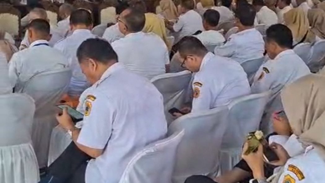Foto: Para pejabat yang asyik bermain HP saat Sosialisasi KPK di Pendopo Kabupaten Pati (Mondes/Istimewa) PATI – Mondes.co.id | Komisi Pemberantasan Korupsi (KPK) datang ke Pendopo Kantor Bupati Pati untuk melakukan sosialisasi pencegahan korupsi di lingkungan Pemerintah Kabupaten (Pemkab) Pati hari ini, Rabu, 15 April 2026.