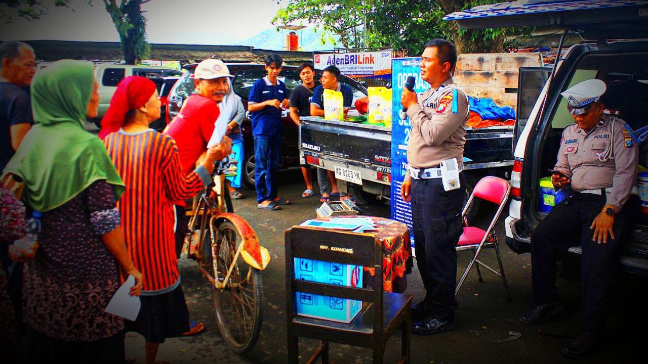 Para Polantas yang merupakan anggota Satgas Operasi Zebra Semeru 2025 itu, terjun di tengah aktivitas ekonomi warga di salah satu pasar tradisional.