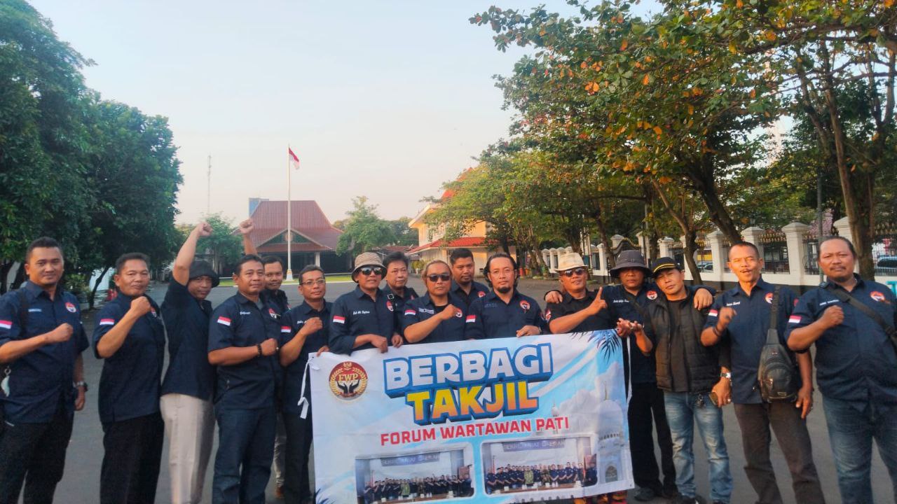 PATI – Mondes.co.id | Forum Wartawan Pati (FWP) membagikan ratusan takjil gratis kepada masyarakat di kawasan Alun-alun Simpang Lima Pati, kemarin.