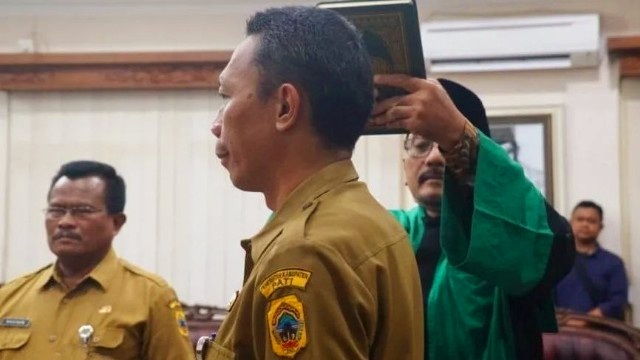 PATI – Mondes.co.id | Kepala Inspektorat Daerah Kabupaten Pati, Teguh Widyatmoko ditunjuk oleh Bupati Pati Sudewo menduduki jabatan Sekretaris Daerah (Sekda) berstatus Penjabat (Pj) atau biasa disebut Pj Sekda. Ia menggantikan posisi Riyoso.