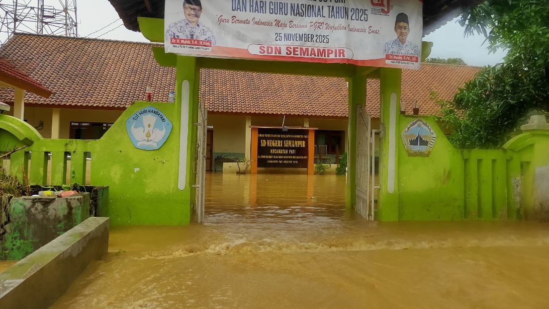 Foto: Kondisi SDN Semampir sedang terendam banjir (Mondes/Singgih) PATI – Mondes.co.id | Banjir di Desa Semampir, Kecamatan Pati, Kabupaten Pati menggenangi bangunan sekolah.