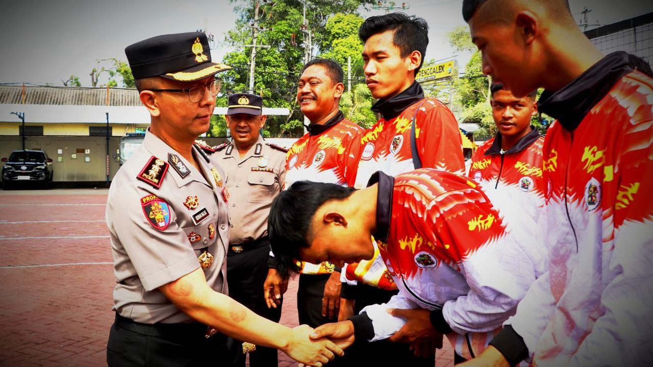 Foto: apolres Trenggalek, AKBP Ridwan Maliki menyalami para atlet voli U-18 yang berangkat ke Kejurprov Jatim (Mondes/Her) TRENGGALEK – Mondes.co.id | Tim Bola Voli U-18 Trenggalek siap berlaga di Kejuaraan provinsi (Kejurprov) Jawa Timur tahun 2026.